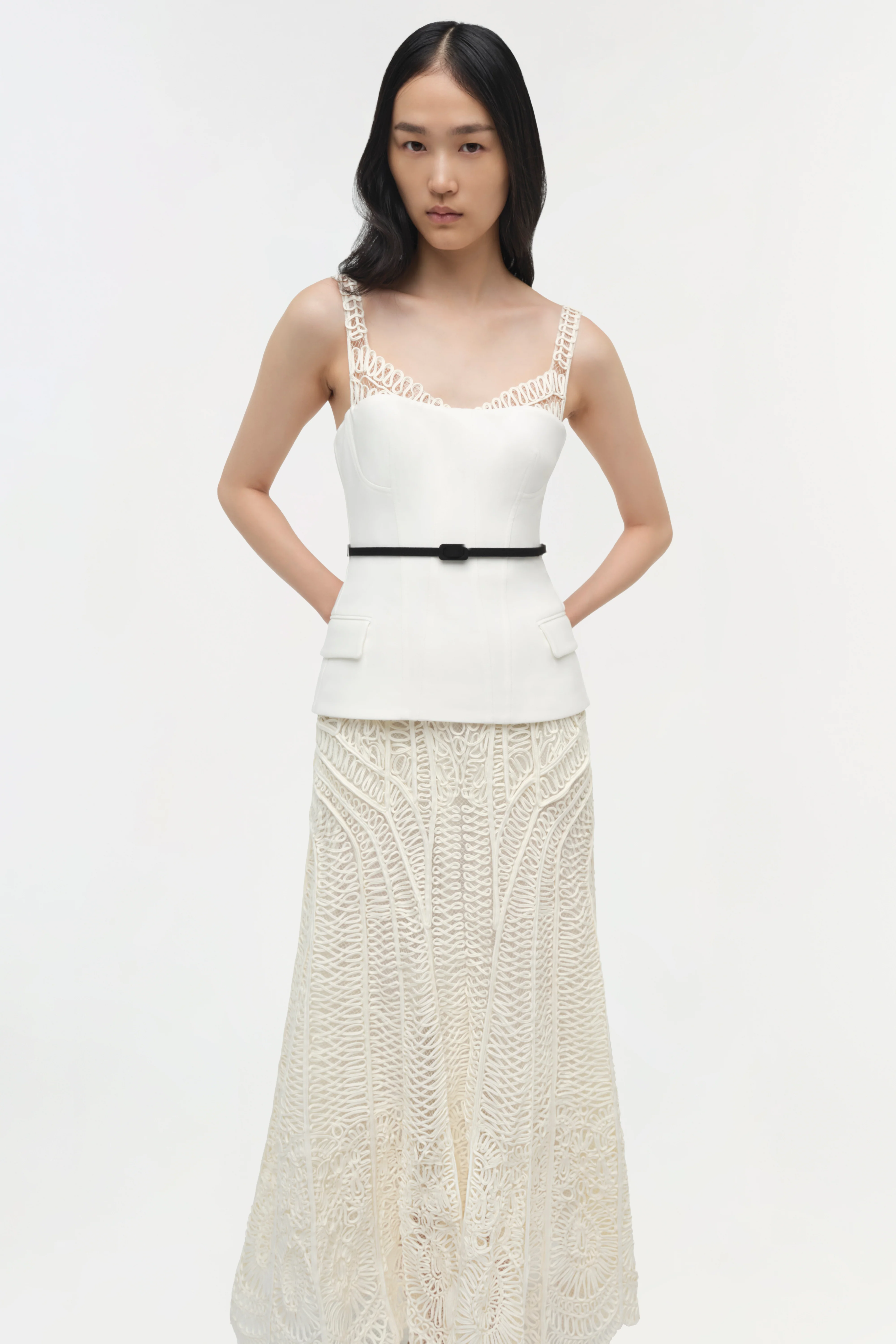 The Mckinnon Guipure Midi Dress in Ivory
