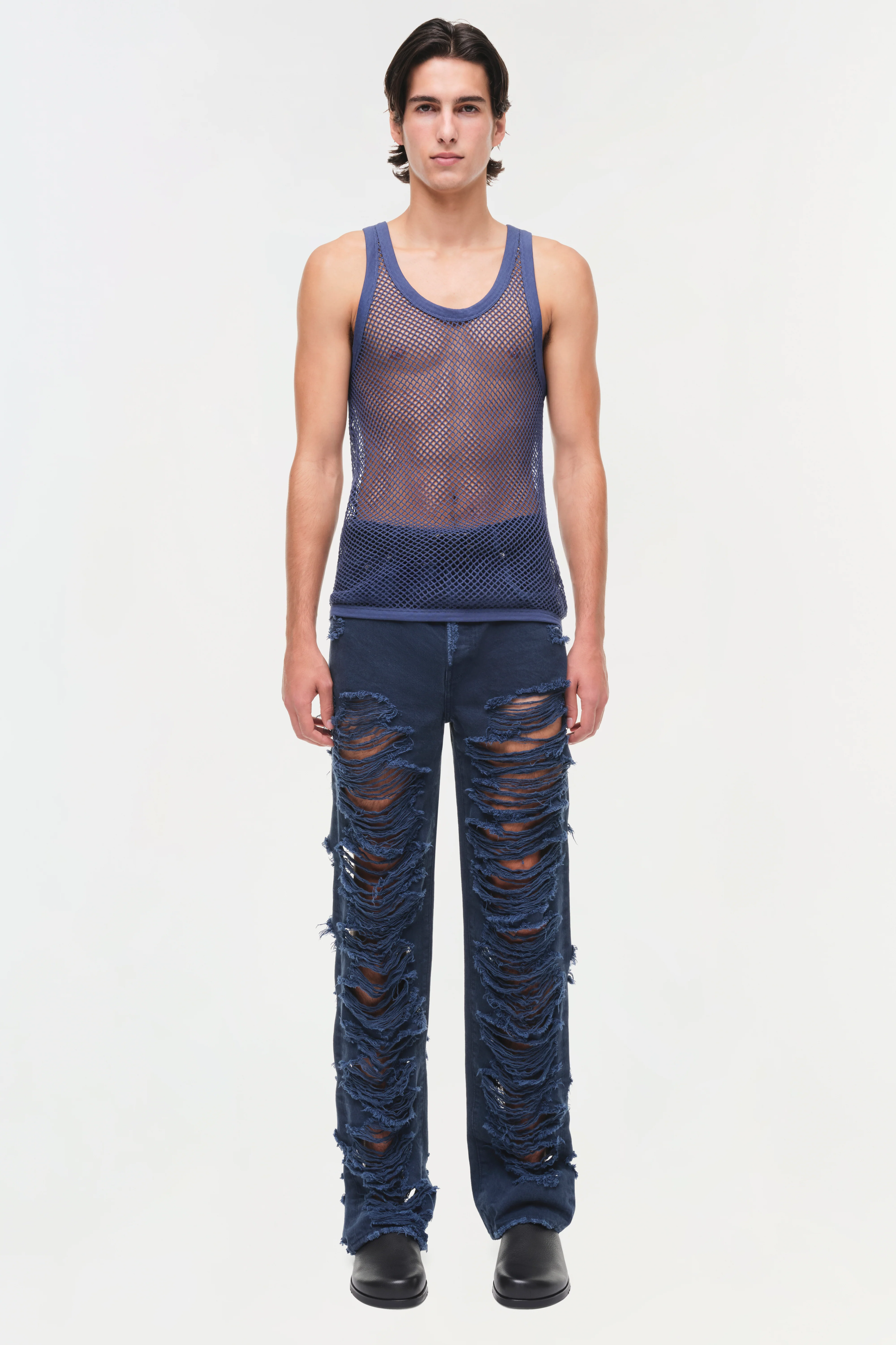 This tank top is crafted from open netted knit, offering a sheer and breathable finish. Designed with a scoop neckline and racerback cut, it brings a modern, athletic edge to layering.