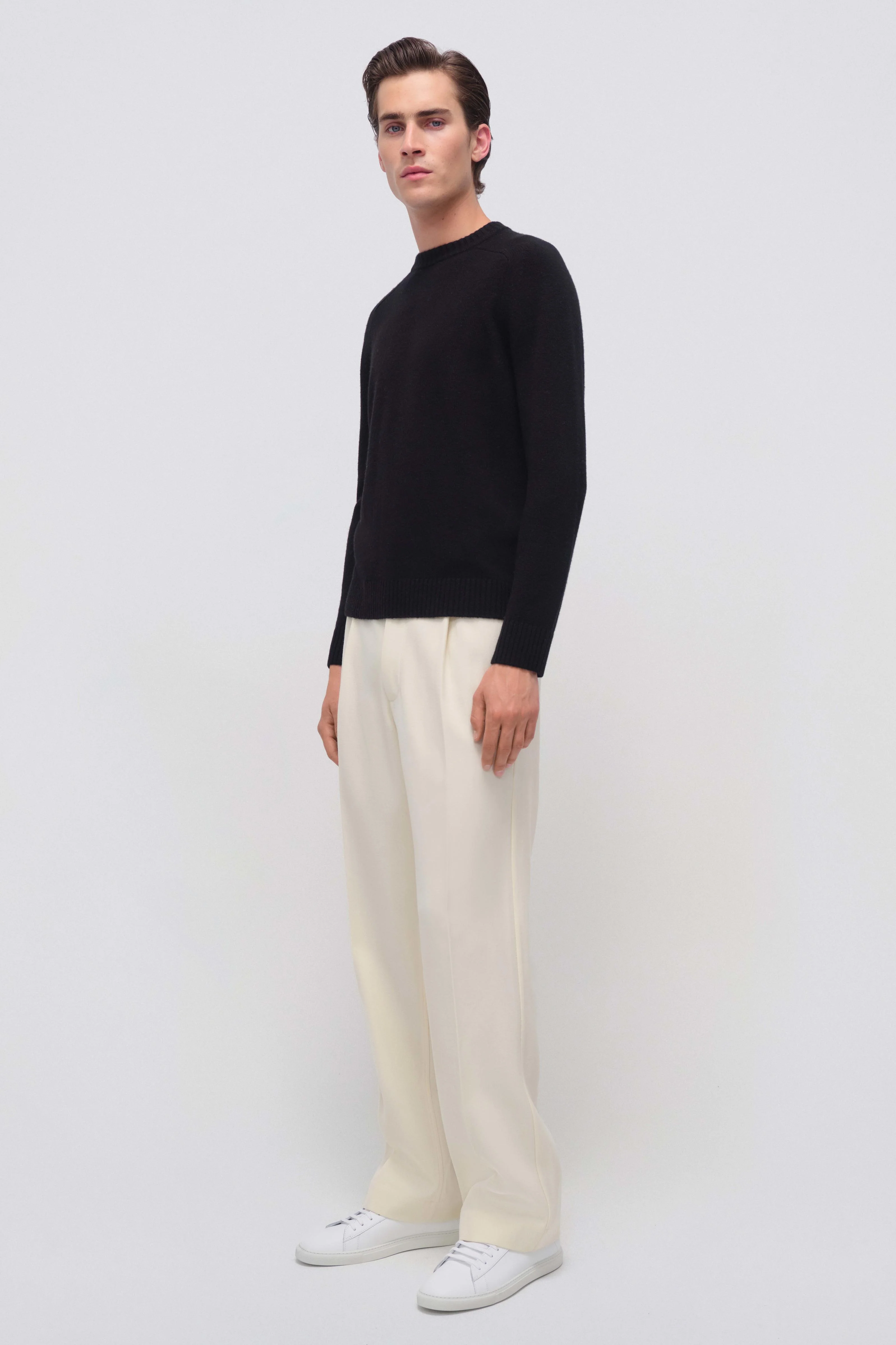 The Carlton Sweater in Black. Long sleeve knit crewneck with a relaxed fit.